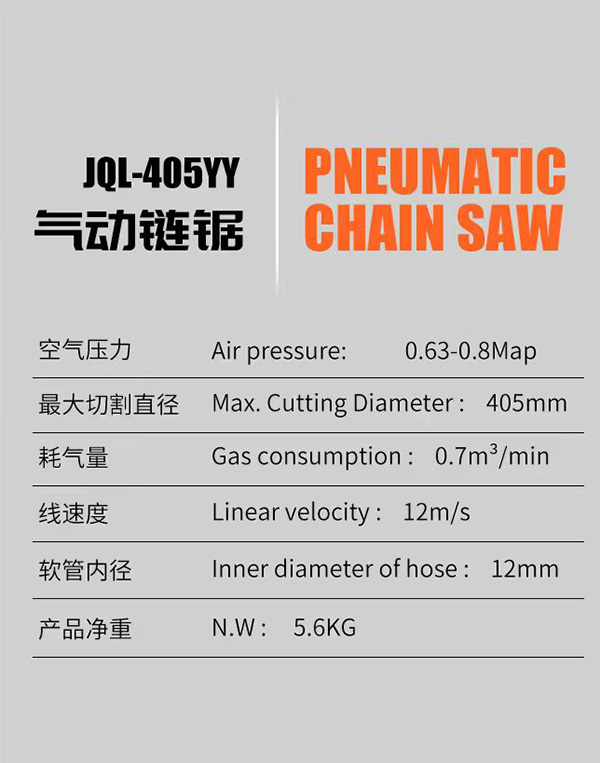 友情提示:感謝您瀏覽我們的JQL-405YY-氣動鏈鋸,我們是專業的氣動鏈鋸廠家,如果您想了解氣動鏈鋸價格,請通過網站留言本或者直接撥打電話與我們取得聯系索要氣動鏈鋸批發價格表!